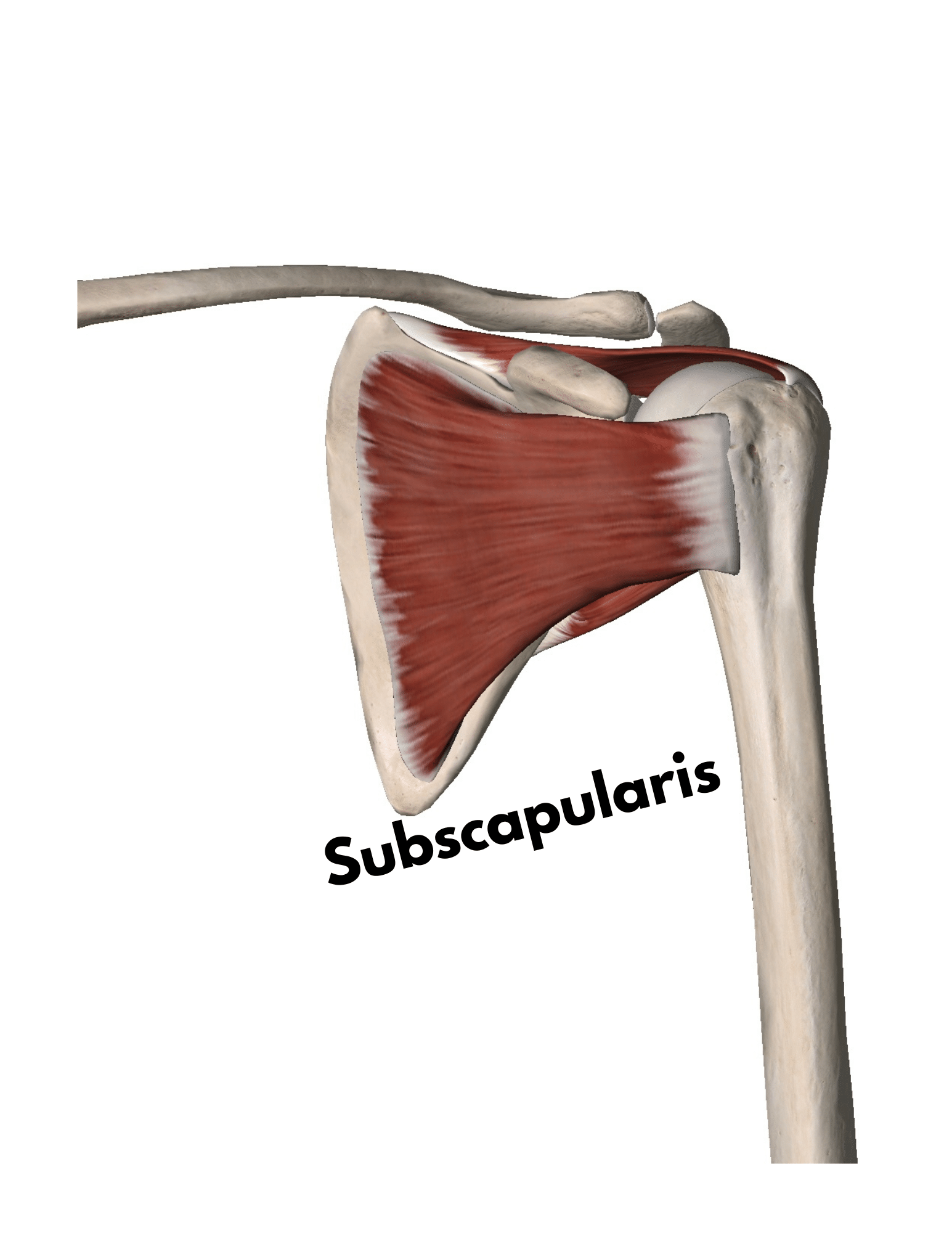 The shoulder anatomy for the rotator cuff includes the structure of the scapula, the clavicle(collarbone) and the humerus (arm bone). When discussing the Rotator Cuff(RC) there are four muscles that are generally being discussed. The Supraspinatus, Infraspinatus, Teres Minor and Subscapularis. Three muscles are primarily helping with External Rotation, while one, the subscapularis, is directly affecting the internal rotation of the shoulder. The Rotator cuff muscles begin on the shoulder blade and cross the glenohumeral joint and attach on the humerus, because of location and direction of pull when contracted they are in control of stabilizing the GH joint along with creating motion.